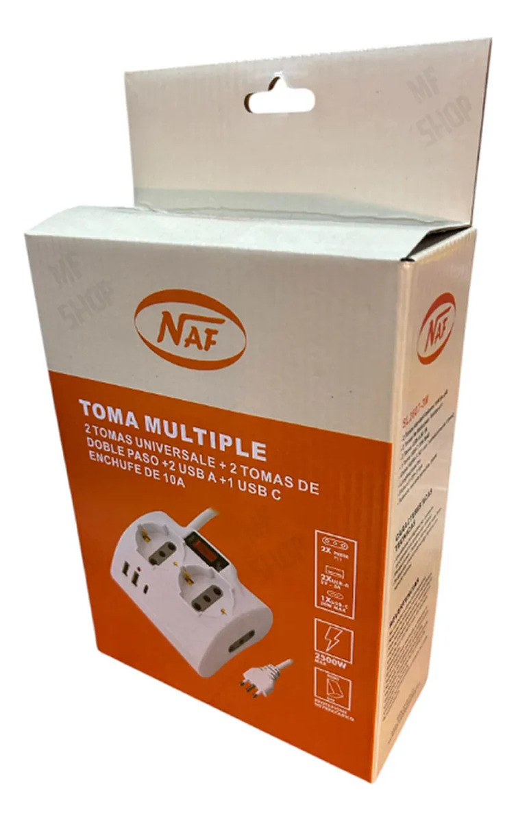 2 tomas universal + 2 tomas de doble paso + 2 usb A + 1 usb C