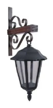 FAROL HEXAGONAL CON SOPORTE METAL Y MADERA