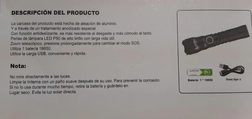 Linterna Recargable De Luz Fuerte Usb Cafini 73011 Contacto