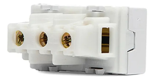 Módulo tomacorriente tipo 3 en línea (2 polos + tierra con seguro), de 10A-250VCA. Ocupa 1 módulo. Módulo premium compatible con las líneas Vetro – Blu – Selene.