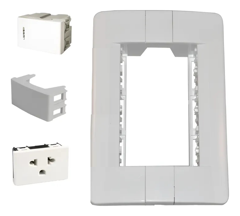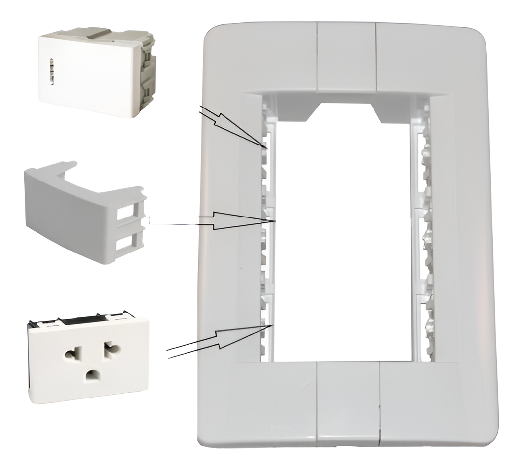 Plaqueta 3 Mod / Con 1 Toma Euro + Llave Unipolar + Ciego