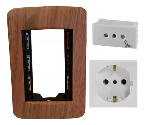 PLAQUETA 3 MODULOS ROBLE + 1 MODULOS TOMA MODULAR + 1 MODULO SHUCKO