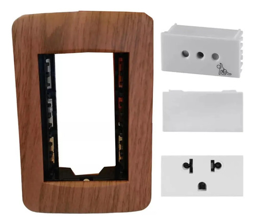 PLAQUETA 3 MODULOS ROBLE + 1 MODULO TOMA 3 EN LINEA + 1 MODULO TOMA EURO + 1 MODULO CIEGO