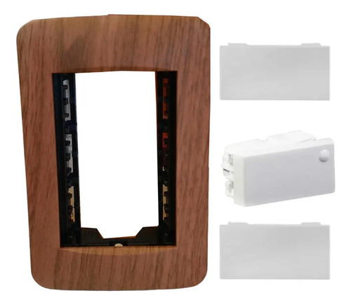PLAQUETA 3 MODULOS ROBLE + 1 MODULOS UNIPOLAR + 2 MODULO CIEGO